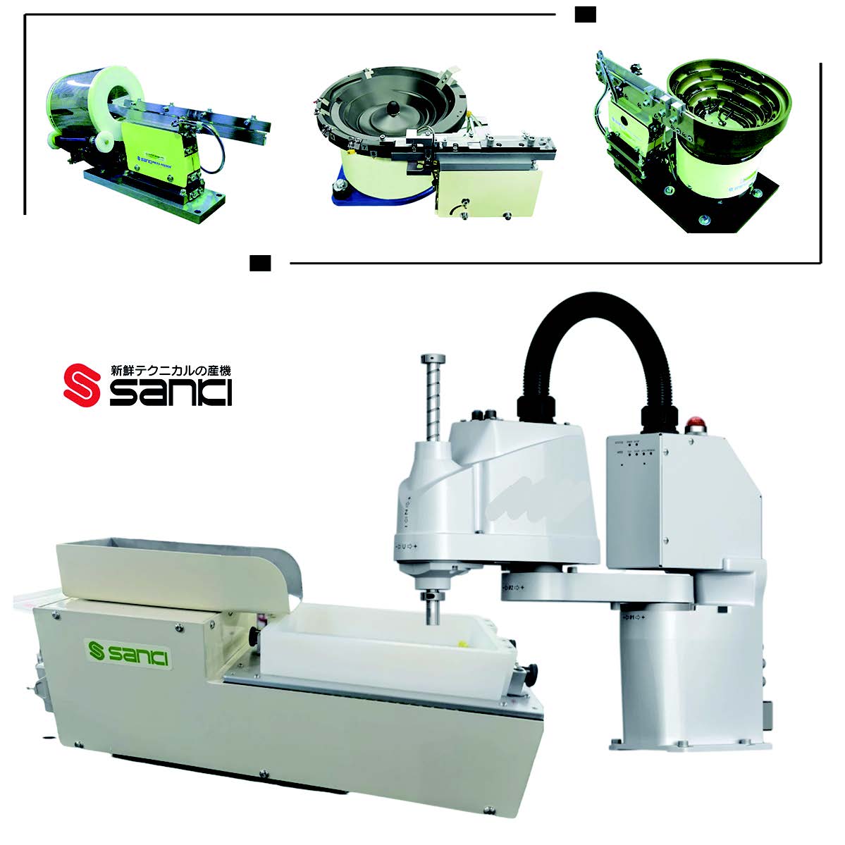 “Sanki partsfeeder” 广泛应用于汽车、电机等领域的机加工生产线和零件装配生产线中。其中,以精细陶瓷制压电素子为驱动源的压电式振动机,具备送料速度快、耐久性卓越、适合搬运小和薄的零件等特点,是在很多方面超越电磁式振动机的高水准振动机。另外,我司生产并销售柔性振动送料器(table feeder),搭配工业相机和机械手使用,更适合多种产品的兼容和切换。